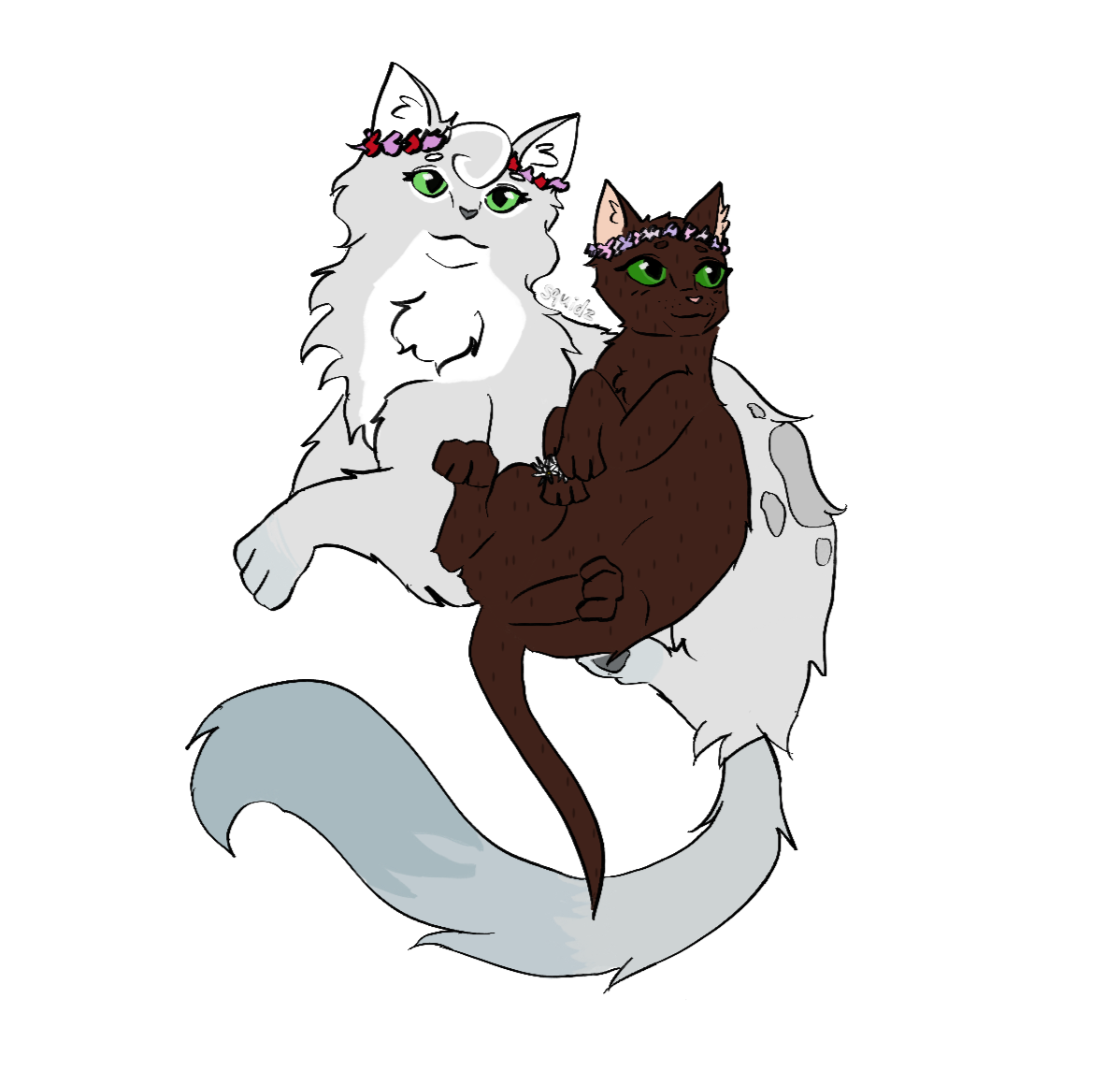 RAINWISH - "Another wonderful she-cat! R-Rainwish is somebody that I know I c-could go to with anything, as she has for me. Trustworthy, kind, a-and patient, she is easy to talk to and also taught m-me a few things about what it means t-to have a friend. She's emphasized that I... d-don't need to keep everything to myself, like I tend to. I'm glad t-to know that she can trust me, too. It's b-been great to see her grow into a warrior, and I look forward to seeing w-what she becomes!