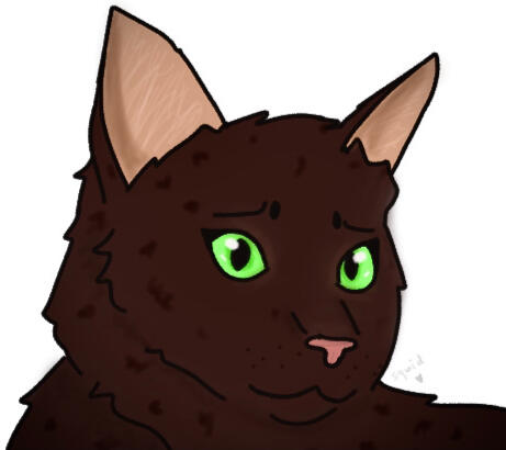 CROWPAW - "A wonderful cat a-and an even better friend! Crowpaw recently t-taught me some things about friendship, a-and the importance of having someone like that around. She's a bit shy a-and timid, and... reminds me of myself, really. E-Especially my earlier moons as an apprentice. I think t-that with some more confidence and support, Crowpaw will grow into a-an excellent warrior; she has a gentle spirit a-and heart of gold that I greatly admire. I'm very g-grateful to have her as a friend."